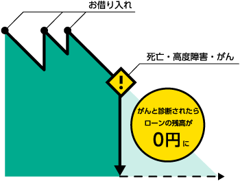 本保障は、カードローンをご利用のお客さまが死亡・高度障害状態となられた場合、またはがんと診断された場合※1に、その時点でのローン残高を保険金等としてお支払し、ローンの返済に充当いたします。
