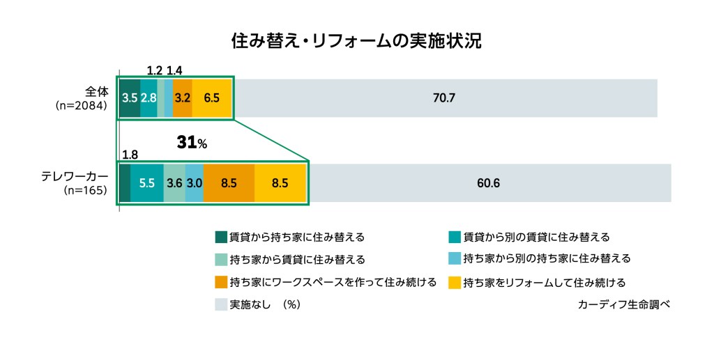 3.テレワーカーの3割が「住み替え・リフォーム等」を実施