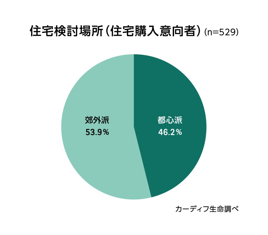 7.住宅検討場所、「郊外派」(54%)、「都心派」(46%)